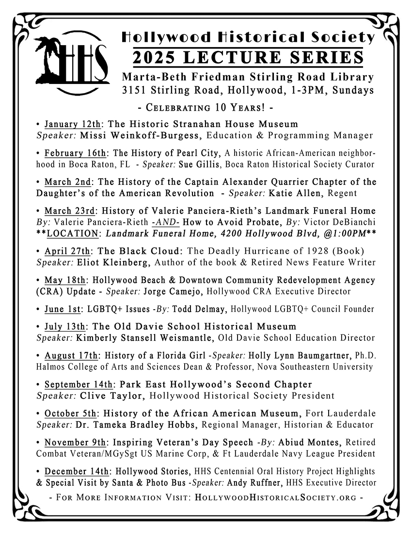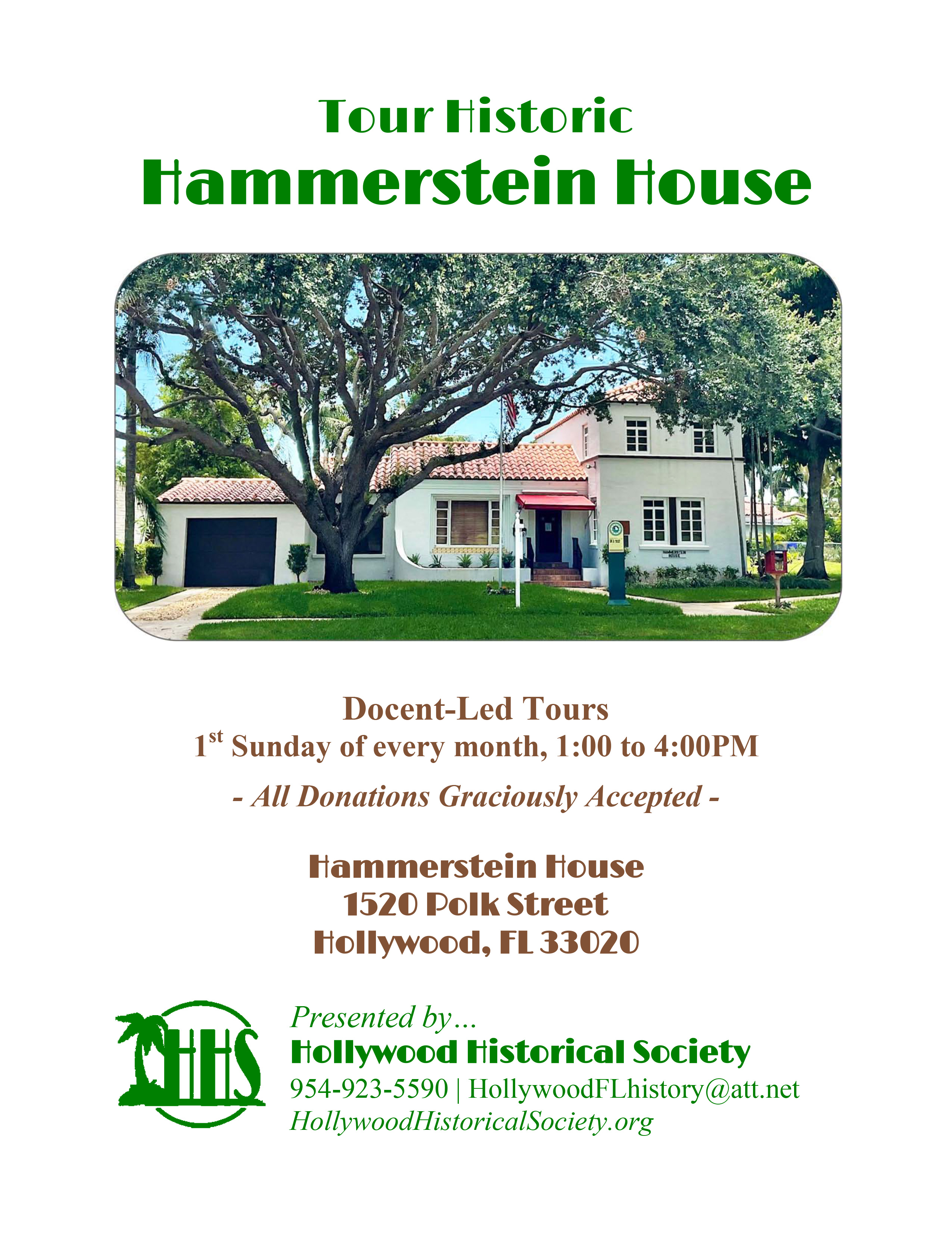 Hollywood Historical Societyis a nonprofit 501(c)(3) organization headquartered in historic Hammerstein House It's the City of Hollywood Centennial, Celebrating 100-Years! 1925-2025 |