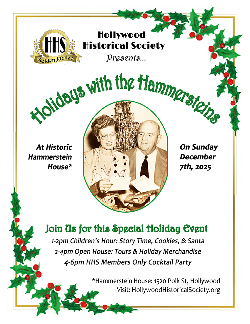 Hollywood Historical Societyis a nonprofit 501(c)(3) organization headquartered in historic Hammerstein House |