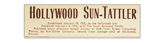 Sun-Tattler Digitization ProjectThe Broward County Library, as part of its Digitization Project, has now made the digital files of the Hollywood Sun Tattler Newspaper Collection available ONLINE